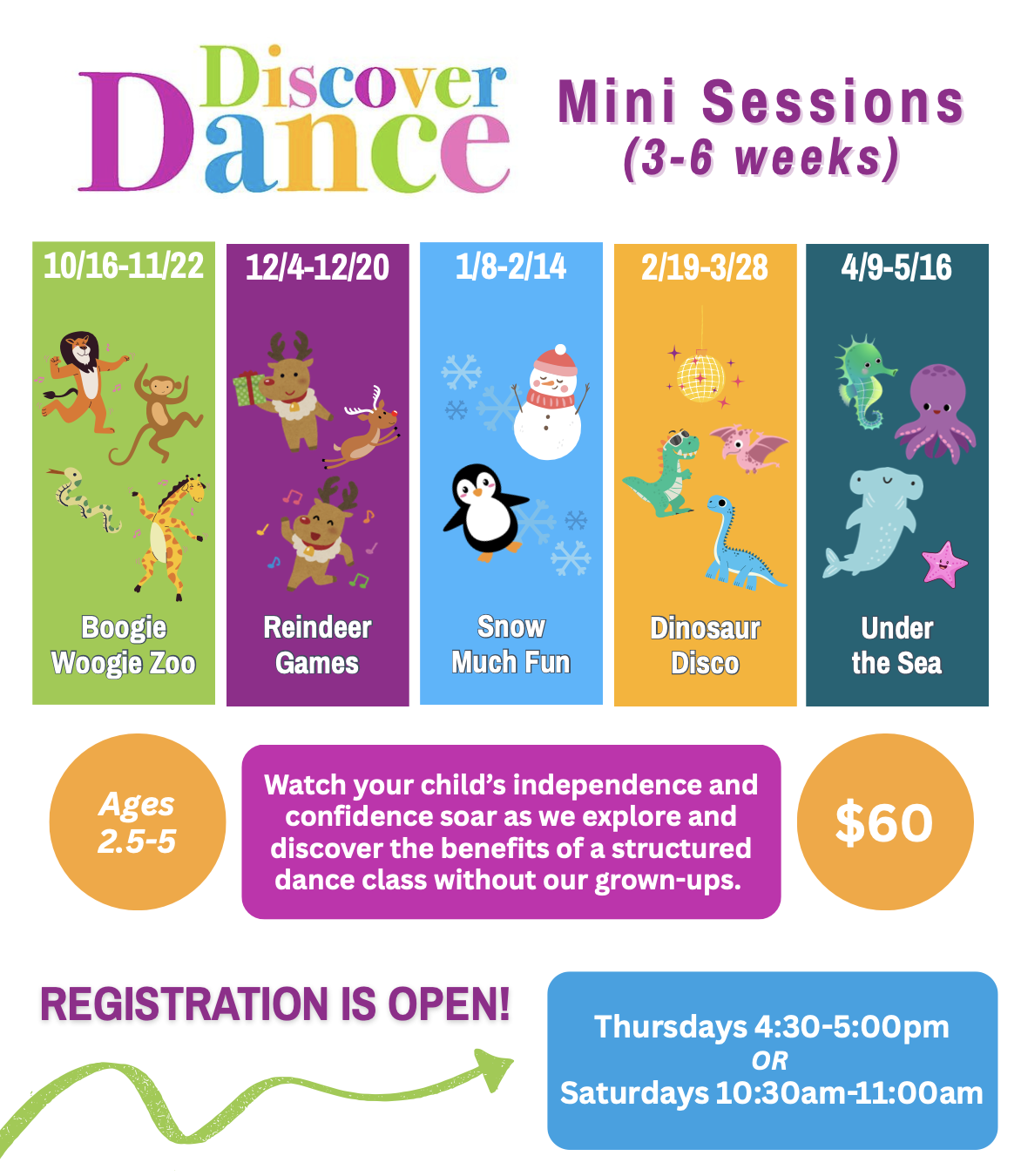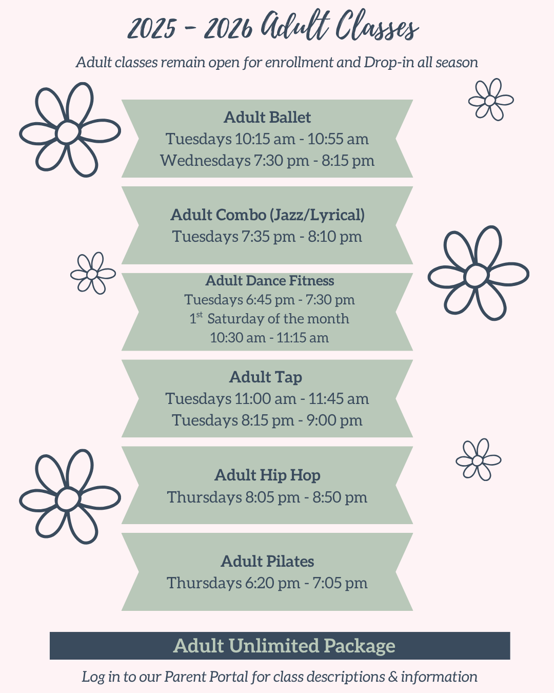 Registration is still OPEN for Discover Dance, Petites, and Adult Performance Classes! -- $10 Trial Classes! -- Adult Unlimited Package! -- Discover Dance Mini Sessions! --